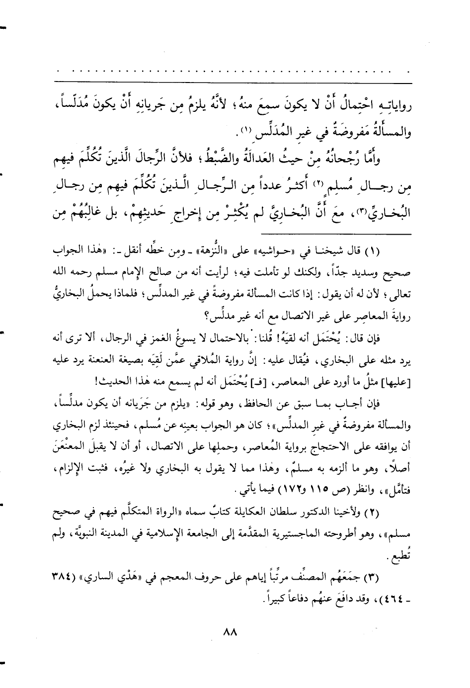 وأَمَّا رُجْحَانُهُ مِنْ حيثُ العَدالَةُ والضَّبْطُ؛ فلأنَّ الرِّجالَ الَّذينَ تُكُلَِّمَ فيهِم مِن رجالِ مُسلِمٍ أَكثرُ عَدداً مِن الرِّجالِ الَّذينَ تُكُلِّمَ فيهِم مِن رجالِ البُخاريِّ، معَ أَنَّ البُخارِيَّ لم يُكْثِرْ مِن إِخراجِ حَديثِهِمْ، بل غالِبُهُمْ مِن