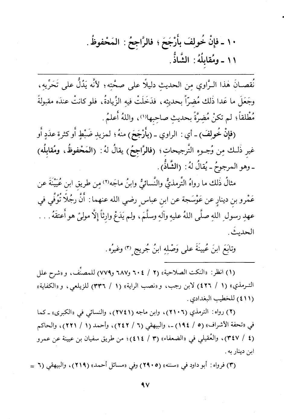 10 - فَإِنْ خُولِفَ بِأَرْجَحَ؛ فَالرَّاجِحُ الْمَحْفُوظُ.