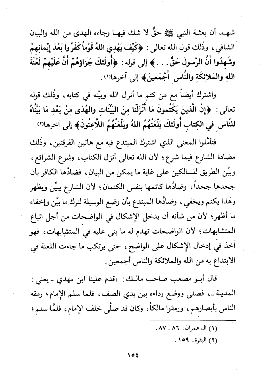 فَتَأَمَّلُوا الْمَعْنَى الَّذِي اشْتَرَكَ الْمُبْتَدِعُ فِيهِ مَعَ هَاتَيْنِ الْفِرْقَتَيْنِ، وَذَلِكَ مُضَادَّةُ الشَّارِعِ فِيمَا شَرَعَ; لِأَنَّ اللَّهَ تَعَالَى أَنْزَلَ الْكِتَابَ وَشَرَعَ الشَّرَائِعَ، وَبَيَّنَ الطَّرِيقَ لِلسَّالِكِينَ عَلَى غَايَةِ مَا يُمْكِنُ مِنَ الْبَيَانِ، فَضَادَّهَا الْكَافِرُ بِأَنْ جَحَدَهَا جَحْدًا، وَضَادَّهَا كَاتِمُهَا بِنَفْسِ الْكِتْمَانِ، لِأَنَّ الشَّارِعَ يُبَيِّنُ وَيُظْهِرُ وَهَذَا يَكْتُمُ وَيُخْفِي، وَضَادَّهَا الْمُبْتَدِعُ بِأَنْ وَضَعَ الْوَسِيلَةَ لِتَرْكِ مَا بَيَّنَ وَإِخْفَاءِ مَا أَظْهَرَ، لِأَنَّ مِنْ شَأْنِهِ أَنْ يُدْخِلَ الْإِشْكَالَ فِي الْوَاضِحَاتِ، مِنْ أَجْلِ اتِّبَاعِ الْمُتَشَابِهَاتِ، لِأَنَّ الْوَاضِحَاتِ تَهْدِمُ لَهُ مَا بَنَى عَلَيْهِ مِنَ الْمُتَشَابِهَاتِ، فَهُوَ آخِذٌ فِي إِدْخَالِ الْإِشْكَالِ عَلَى الْوَاضِحِ، حَتَّى يَرْتَكِبَ مَا جَاءَتِ اللَّعْنَةُ فِي الِابْتِدَاعِ بِهِ مِنَ اللَّهِ وَالْمَلَائِكَةِ وَالنَّاسِ أَجْمَعِينَ.