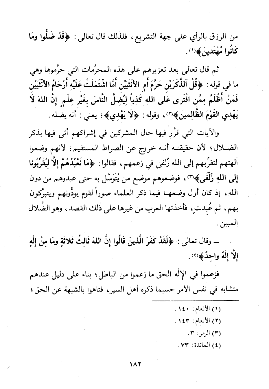 مِنَ الرِّزْقِ بِالرَّأْيِ عَلَى جِهَةِ التَّشْرِيعِ، فَلِذَلِكَ قَالَ تَعَالَى: {قَدْ ضَلُّوا وَمَا كَانُوا مُهْتَدِينَ} [الأنعام: 140].