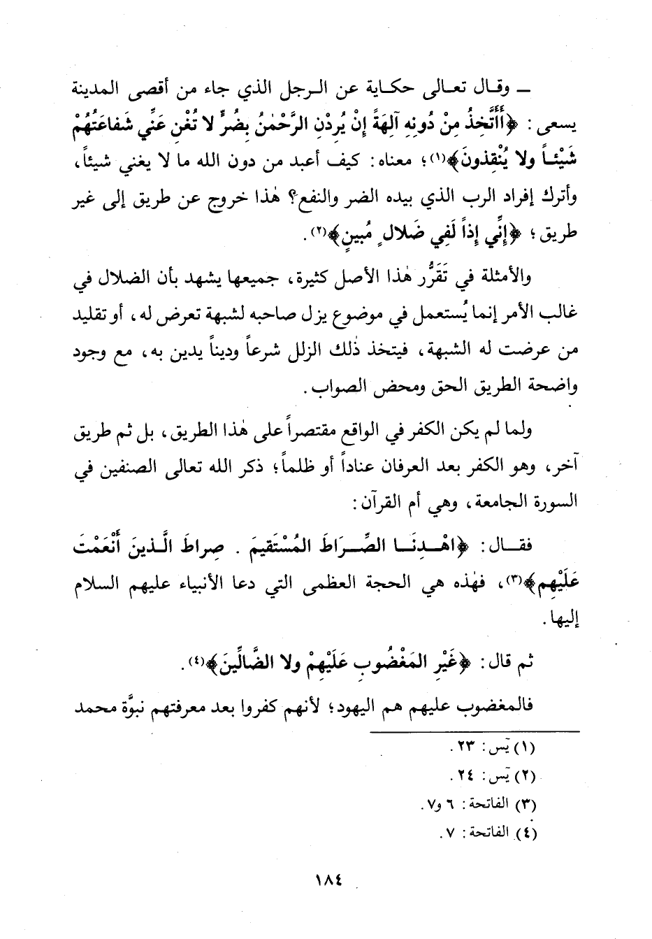فَقَالَ: {اهْدِنَا الصِّرَاطَ الْمُسْتَقِيمَ - صِرَاطَ الَّذِينَ أَنْعَمْتَ عَلَيْهِمْ} [الفاتحة: 6 - 7]، فَهَذِهِ هِيَ الْحُجَّةُ الْعُظْمَى الَّتِي دَعَا الْأَنْبِيَاءُ عَلَيْهِمُ السَّلَامُ إِلَيْهَا.