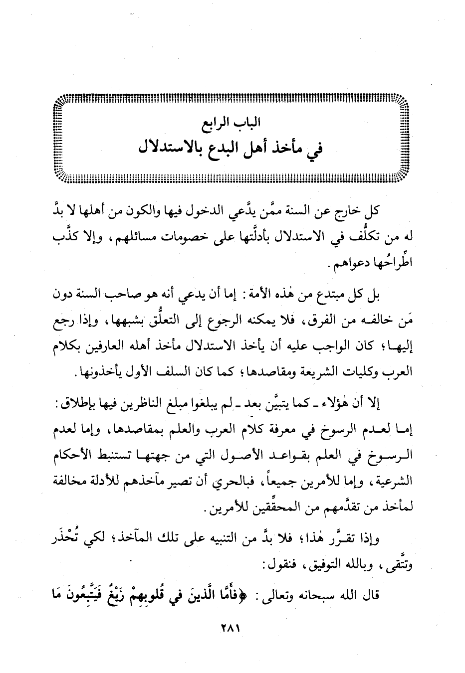 [الْبَابُ الرَّابِعُ فِي مَأْخَذِ أَهْلِ الْبِدَعِ بِالِاسْتِدْلَالِ]