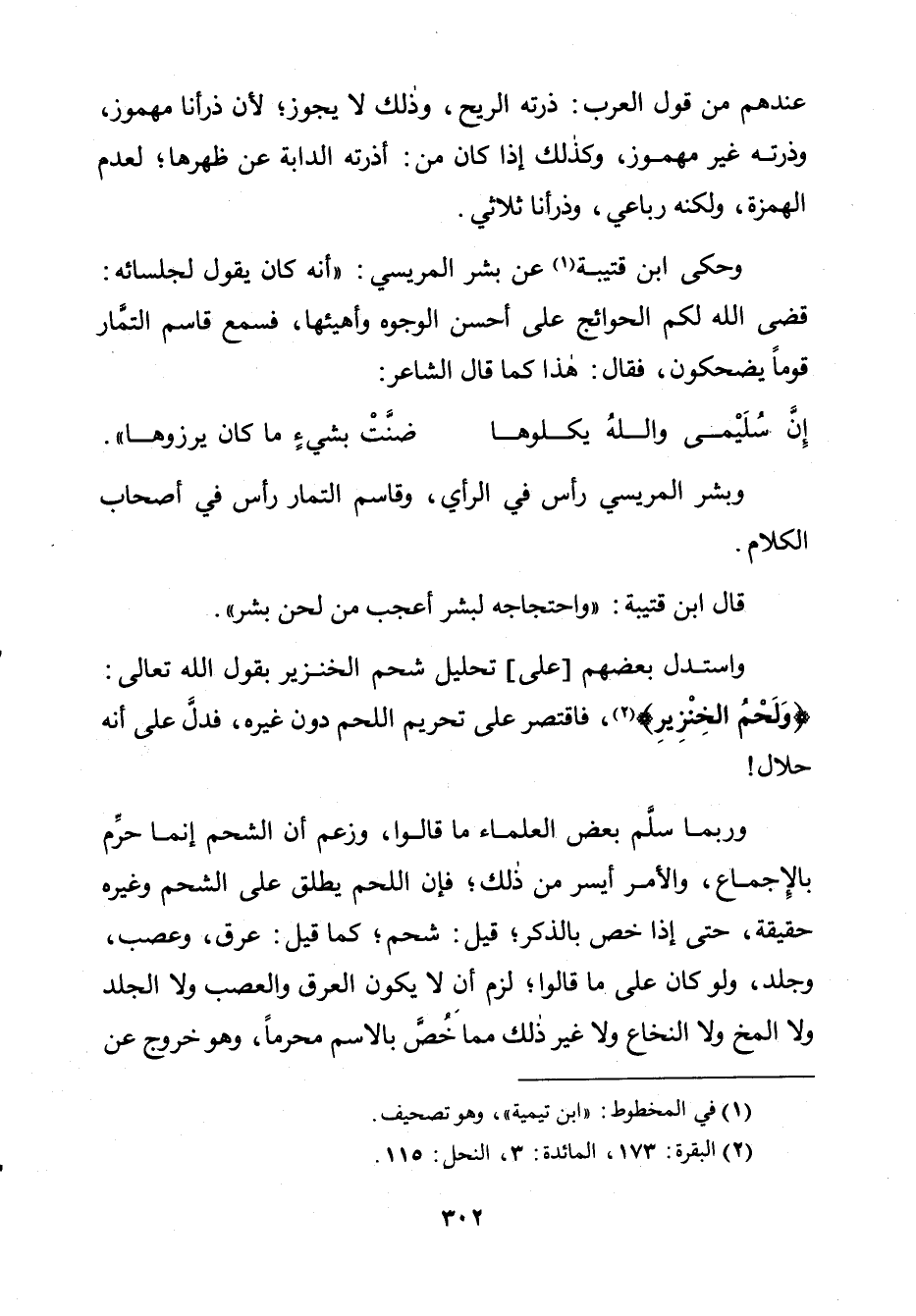 قَالَ ابْنُ قُتَيْبَةَ: " وَاحْتِجَاجُهُ لِبِشْرٍ أَعْجَبُ مِنْ لَحْنِ بِشْرٍ ".