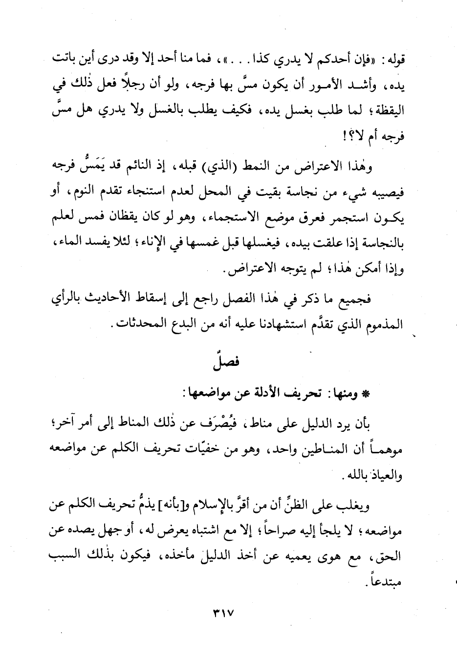 وَيَغْلِبُ عَلَى الظَّنِّ أَنَّ مَنْ أَقَرَّ بِالْإِسْلَامِ، وَ [بِأَنَّهُ] يَذُمُّ تَحْرِيفَ الْكَلِمِ عَنْ مَوَاضِعِهِ؛ لَا يَلْجَأُ إِلَيْهِ صُرَاحًا؛ إِلَّا مَعَ اشْتِبَاهٍ يَعْرِضُ لَهُ، أَوْ جَهْلٍ يَصُدُّهُ عَنِ الْحَقِّ، مَعَ هَوَىً يَعْمِيهِ عَنْ أَخْذِ الدَّلِيلِ مَأْخَذَهُ، فَيَكُونُ بِذَلِكَ السَّبَبِ مُبْتَدَعًا.