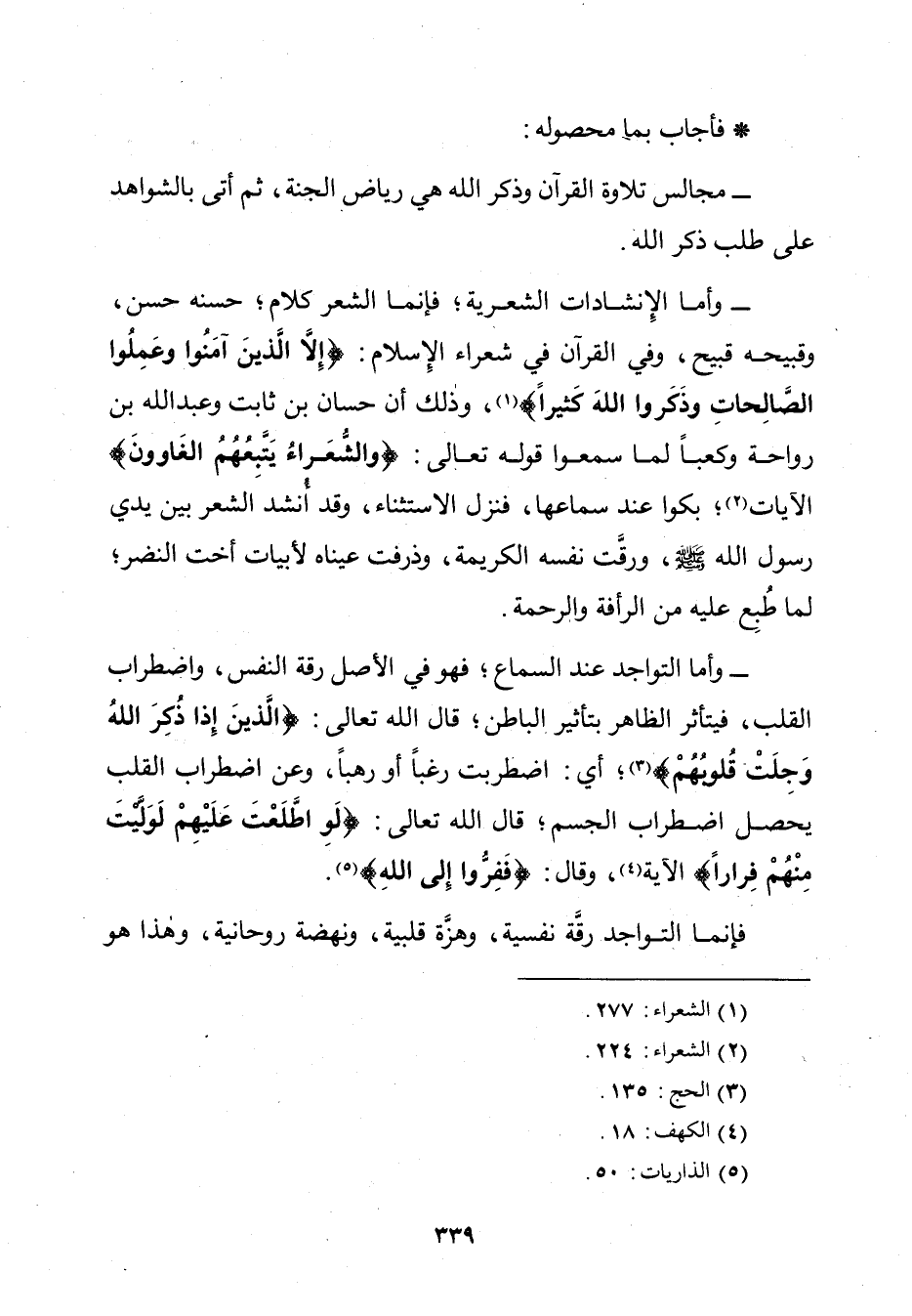 فَإِنَّمَا التَّوَاجُدُ رِقَّةٌ نَفْسِيَّةٌ، وَهَزَّةٌ قَلْبِيَّةٌ، وَنَهْضَةٌ رُوحَانِيَّةٌ، وَهَذَا هُوَ