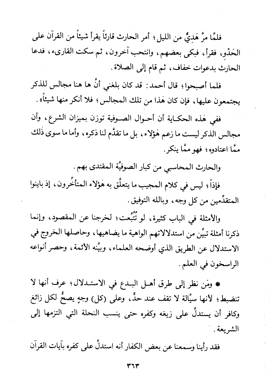 وَمَنْ نَظَرَ إِلَى طُرُقِ أَهْلِ الْبِدَعِ فِي الِاسْتِدْلَالِ؛ عَرَفَ أَنَّهَا لَا تَنْضَبِطُ؛ لِأَنَّهَا سَيَّالَةٌ لَا تَقِفُ عِنْدَ حَدٍّ، وَعَلَى (كُلِّ) وَجْهٍ يَصِحُّ لِكُلِّ زَائِغٍ وَكَافِرٍ أَنْ يَسْتَدِلَّ عَلَى زَيْغِهِ وَكُفْرِهِ حَتَّى يَنْسِبَ النِّحْلَةَ الَّتِي الْتَزَمَهَا إِلَى الشَّرِيعَةِ.