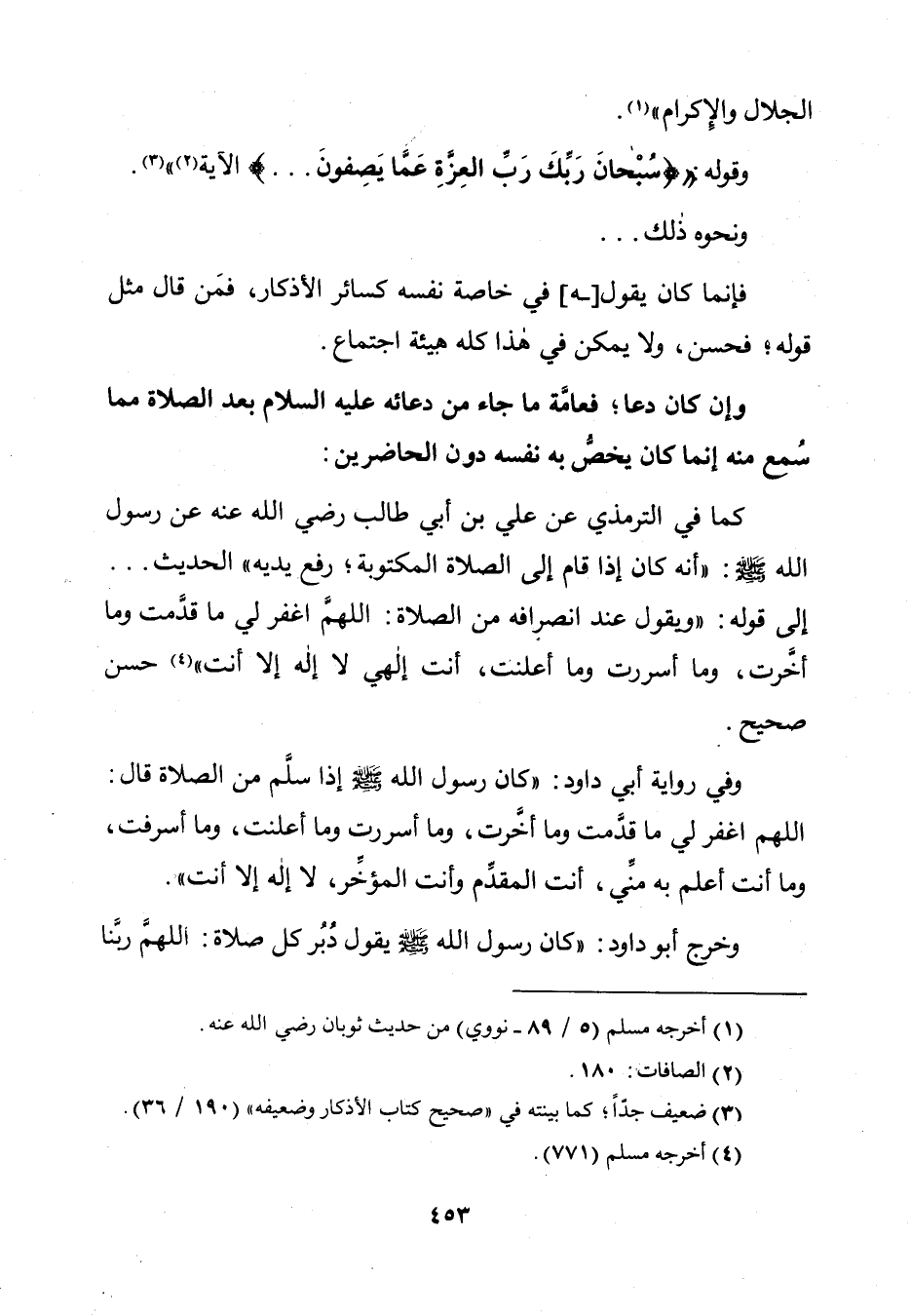 كَمَا فِي التِّرْمِذِيِّ عَنْ عَلِيِّ بْنِ أَبِي طَالِبٍ رَضِيَ اللَّهُ عَنْهُ، «عَنْ رَسُولِ اللَّهِ صَلَّى اللَّهُ عَلَيْهِ وَسَلَّمَ أَنَّهُ: كَانَ إِذَا قَامَ إِلَى الصَّلَاةِ الْمَكْتُوبَةِ رَفَعَ يَدَيْهِ». . الْحَدِيثَ، إِلَى قَوْلِهِ: «وَيَقُولُ عِنْدَ انْصِرَافِهِ مِنَ الصَّلَاةِ: اللَّهُمَّ اغْفِرْ لِي مَا قَدَّمْتُ وَمَا أَخَّرْتُ، وَمَا أَسْرَرْتُ وَمَا أَعْلَنْتُ، أَنْتَ إِلَهِي لَا إِلَهَ إِلَّا أَنْتَ»، حَسَنٌ صَحِيحٌ.