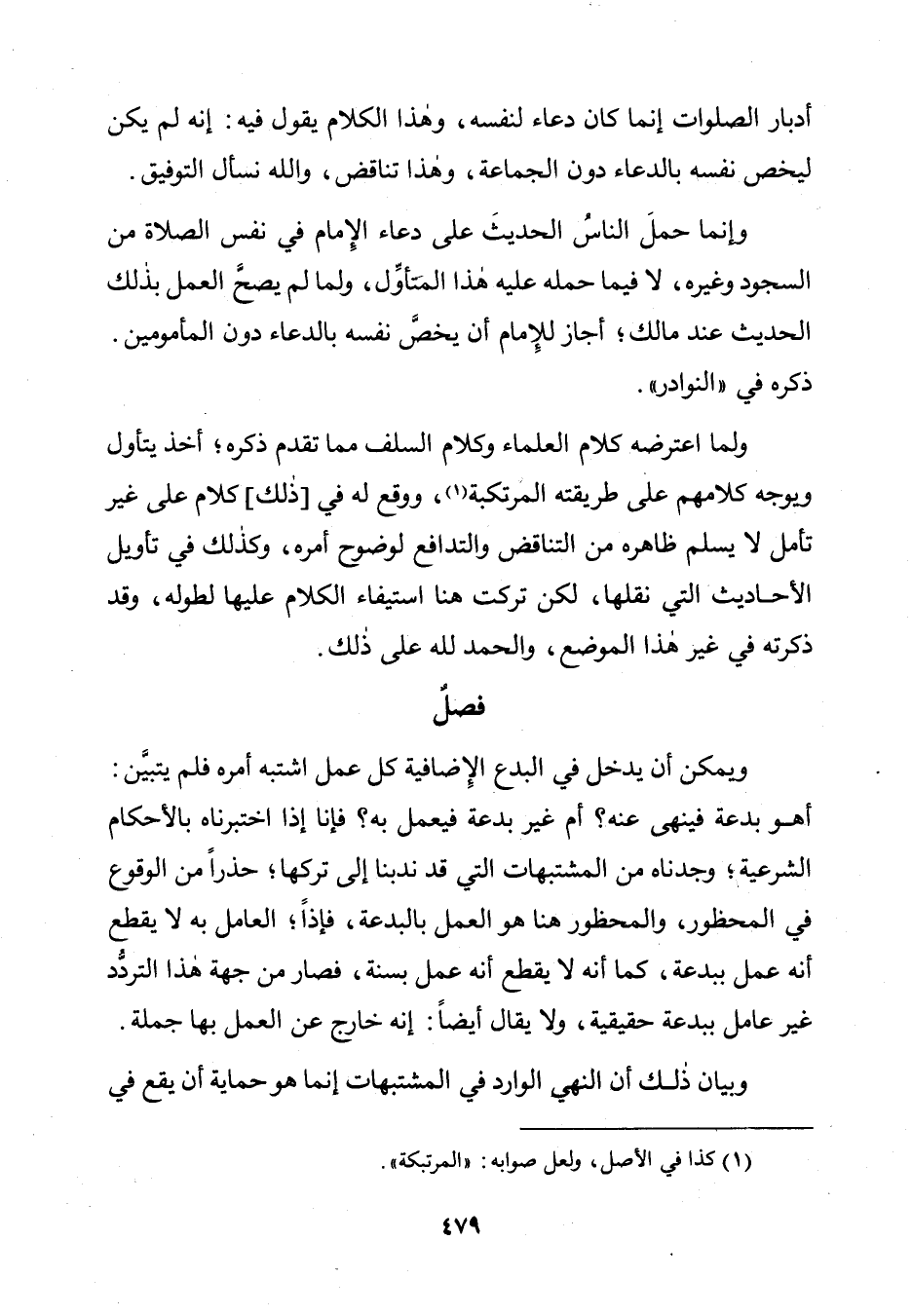 [فَصْلٌ مِنَ الْبِدَعِ الْإِضَافِيَّةِ كُلُّ عَمَلٍ اشْتَبَهَ أَمْرُهُ فَلَمْ يَتَبَيَّنْ أَهُوَ بِدْعَةٌ أَمْ غَيْرُ بِدْعَةٍ]