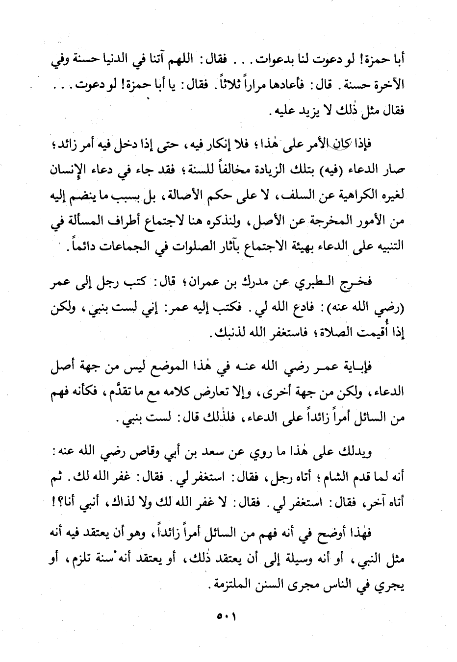 فَخَرَّجَ الطَّبَرِيُّ عَنْ مُدْرِكِ بْنِ عِمْرَانَ؛ قَالَ: كَتَبَ رَجُلٌ إِلَى عُمَرَ (رَضِيَ اللَّهُ عَنْهُ): فَادْعُ اللَّهَ لِي، فَكَتَبَ إِلَيْهِ عُمَرُ: إِنِّي لَسْتُ بِنَبِيٍّ، وَلَكِنْ إِذَا أُقِيمَتِ الصَّلَاةُ؛ فَاسْتَغْفِرِ اللَّهَ لِذَنْبِكَ.