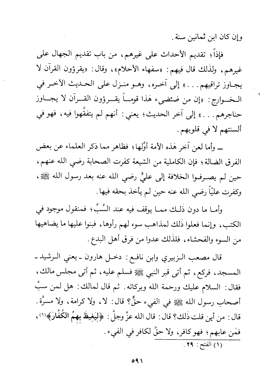 فَإِذَا تَقْدِيمُ الْأَحْدَاثِ عَلَى غَيْرِهِمْ، مِنْ بَابِ تَقْدِيمِ الْجُهَّالِ عَلَى غَيْرِهِمْ، وَلِذَلِكَ قَالَ فِيهِمْ: سُفَهَاءَ الْأَحْلَامِ وَقَالَ: «يَقْرَءُونَ الْقُرْآنَ لَا يُجَاوِزُ تَرَاقِيَهُمْ» إِلَى آخِرِهِ، وَهُوَ مُنَزَّلٌ عَلَى الْحَدِيثِ الْآخَرِ فِي الْخَوَارِجِ: