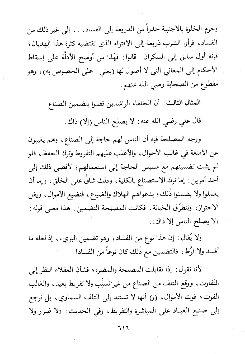 الْمِثَالُ الثَّالِثُ: إِنَّ الْخُلَفَاءَ الرَّاشِدِينَ قَضَوْا بِتَضْمِينِ الصُّنَّاعِ