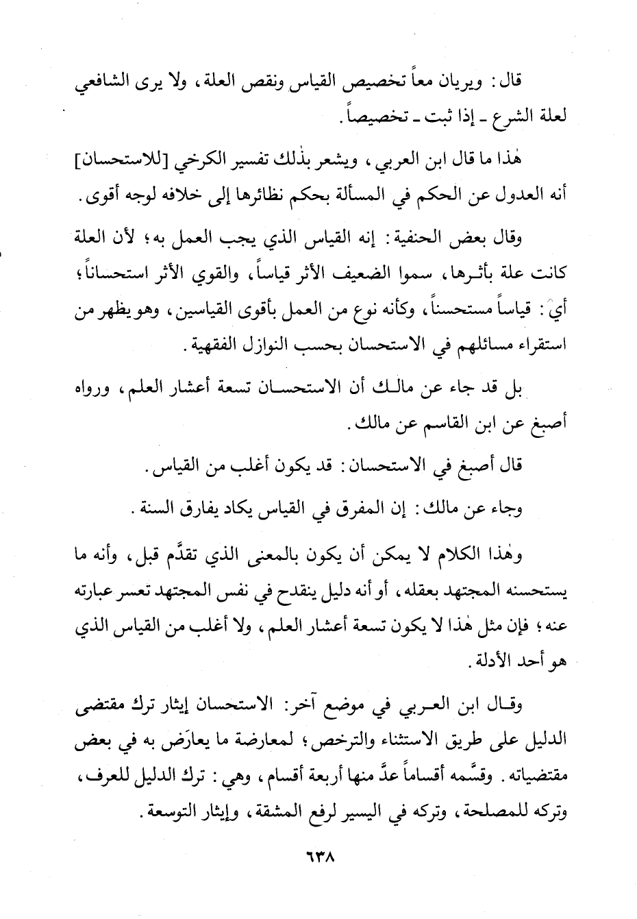 هَذَا مَا قَالَ ابْنُ الْعَرَبِيِّ. وَيُشْعِرُ بِذَلِكَ تَفْسِيرُ الْكَرْخِيِّ لِلِاسْتِحْسَانِ أَنَّهُ الْعُدُولُ عَنِ الْحُكْمِ فِي الْمَسْأَلَةِ بِحُكْمِ نَظَائِرِهَا إِلَى خِلَافِهِ لِوَجْهٍ أَقْوَى.