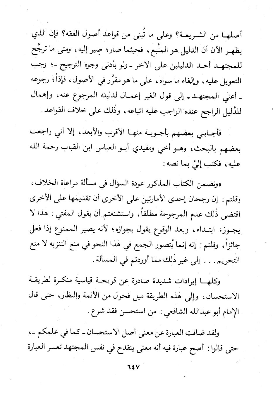 وَكُلُّهَا إِيرَادَاتٌ شَدِيدَةٌ صَادِرَةٌ عَنْ قَرِيحَةٍ قِيَاسِيَّةٍ مُنْكِرَةٍ لِطَرِيقَةِ الِاسْتِحْسَانِ، وَإِلَى هَذِهِ الطَّرِيقَةِ مَيْلُ فَحَوْلٍ مَنِ الْأَئِمَّةِ وَالنُّظَّارِ، حَتَّى قَالَ الْإِمَامُ أَبُو عَبْدِ اللَّهِ الشَّافِعِيُّ: مَنِ اسْتَحْسَنَ فَقَدْ شَرَّعَ.