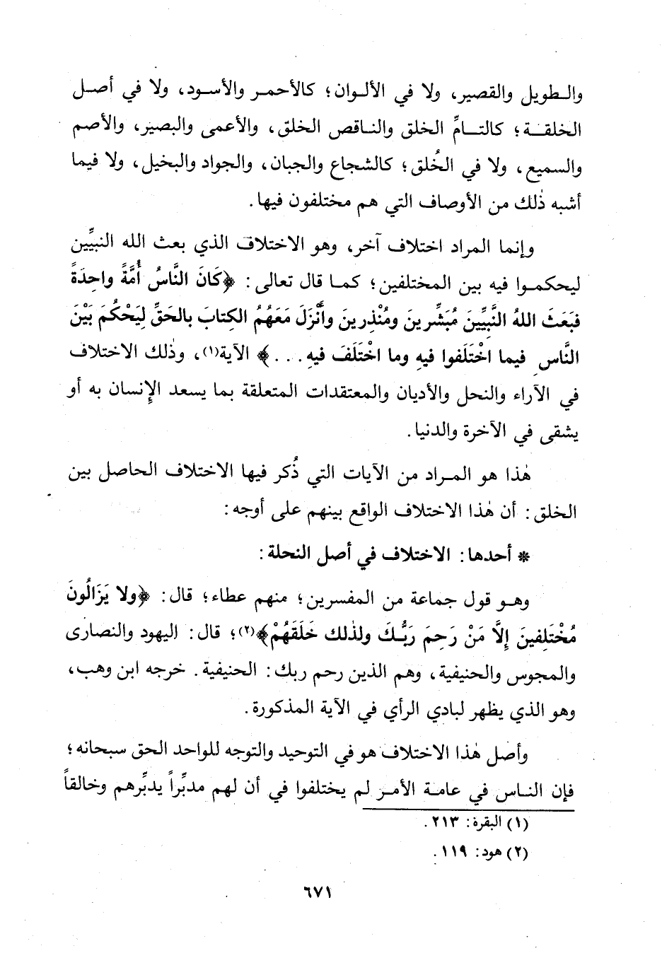 وَإِنَّمَا الْمُرَادُ اخْتِلَافٌ آخَرُ وَهُوَ الِاخْتِلَافُ الَّذِي بَعَثَ اللَّهُ النَّبِيِّينَ لِيَحْكُمُوا فِيهِ بَيْنَ الْمُخْتَلِفِينَ، كَمَا قَالَ تَعَالَى: {كَانَ النَّاسُ أُمَّةً وَاحِدَةً فَبَعَثَ اللَّهُ النَّبِيِّينَ مُبَشِّرِينَ وَمُنْذِرِينَ وَأَنْزَلَ مَعَهُمُ الْكِتَابَ بِالْحَقِّ لِيَحْكُمَ بَيْنَ النَّاسِ فِيمَا اخْتَلَفُوا فِيهِ وَمَا اخْتَلَفَ فِيهِ} [البقرة: 213] الْآيَةَ، وَذَلِكَ الِاخْتِلَافُ فِي الْآرَاءِ وَالنِّحَلِ وَالْأَدْيَانِ وَالْمُعْتَقَدَاتِ الْمُتَعَلِّقَةِ بِمَا يَسْعَدُ الْإِنْسَانُ بِهِ أَوْ يَشْقَى فِي الْآخِرَةِ وَالدُّنْيَا.