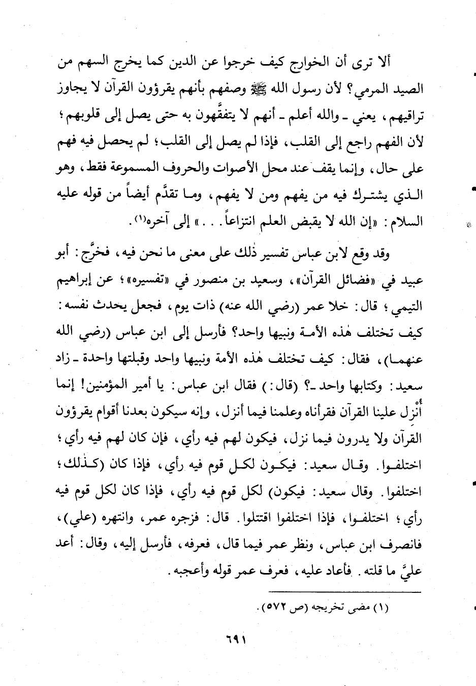 أَلَّا تَرَى إِلَى أَنَّ الْخَوَارِجَ كَيْفَ خَرَجُوا عَنِ الدِّينِ كَمَا يَخْرُجُ السَّهْمُ مِنَ الصَّيْدِ الْمَرْمِيِّ؟ لِأَنَّ رَسُولَ اللَّهِ صَلَّى اللَّهُ عَلَيْهِ وَسَلَّمَ وَصَفَهُمْ: