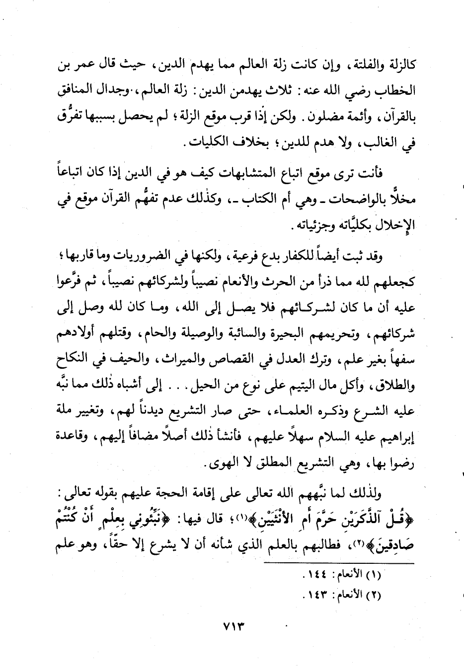 فَأَنْتَ تَرَى مُوقِعُ اتِّبَاعِ الْمُتَشَابِهَاتِ كَيْفَ هُوَ فِي الدِّينِ إِذَا كَانَ اتِّبَاعًا مُخِلًّا بِالْوَاضِحَاتِ. وَهِيَ أُمُّ الْكِتَابِ. وَكَذَلِكَ عَدَمُ تَفَهُّمِ الْقُرْآنِ مُوقِعٌ فِي الْإِخْلَالِ بِكُلِّيَّاتِهِ وَجُزْئِيَّاتِهِ.