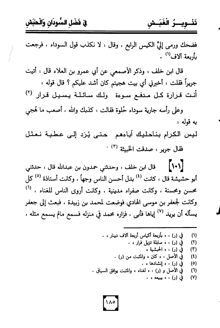 فَضَحِك وَرمى إِلَيّ الْكيس الرَّابِع، وَقَالَ: لَا نكذب قَول السَّوْدَاء، فَرَجَعت بأَرْبعَة آلَاف.