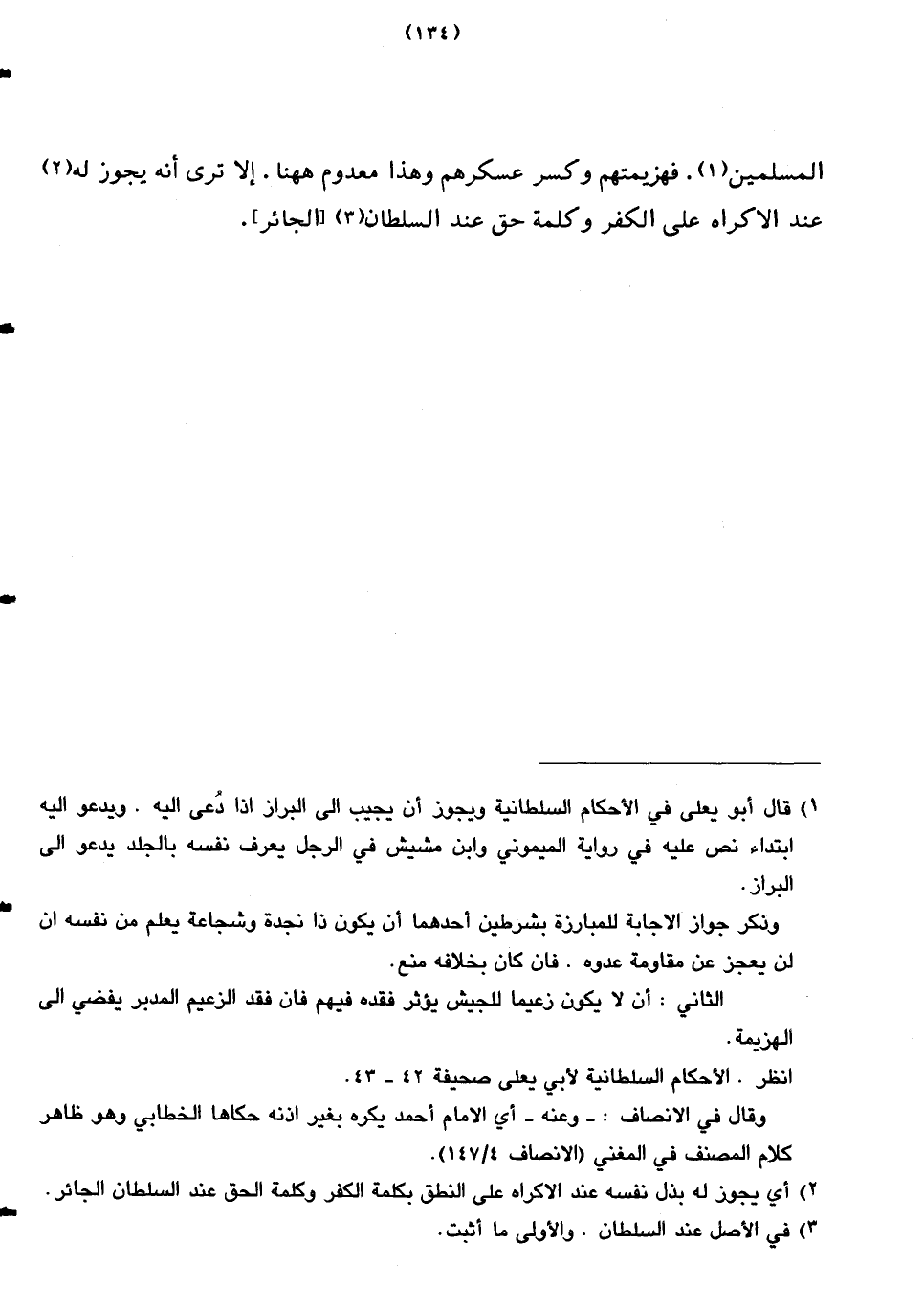 المسلمين. فهزيمتهم وكسر عسكرهم وهذا معدوم ههنا. إلا ترى أنه يجوز له عند الاكراه على الكفر وكلمة حق عند السلطان [الجائر].