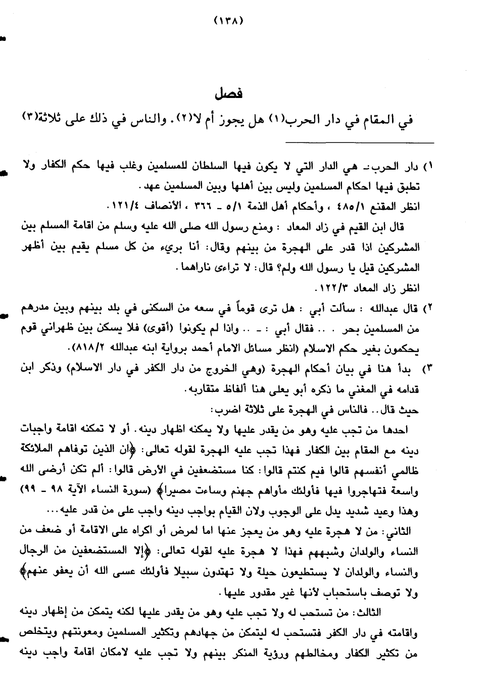 في المقام في دار الحرب هل يجوز أم لا. والناس في ذلك على ثلاثة