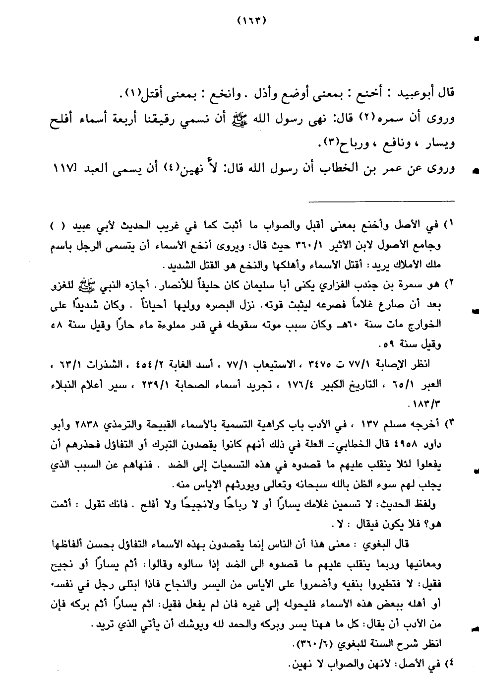 وروى أن سمره قال: نهى رسول الله صلى الله عليه وسلم أن نسمي رقيقنا أربعة أسماء أفلح ويسار، ونافع، ورباح.