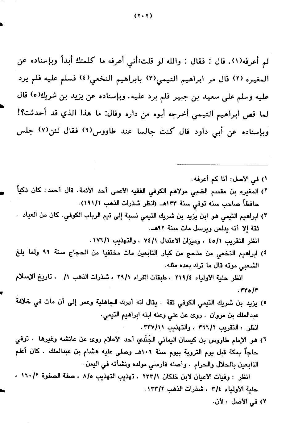 لم أعرفه. قال: فقال: والله لو قلت: أني أعرفه ما كلمتك أبدًا وبإسناده عن المغيرة قال مر ابراهيم التيمي بإبراهيم النخعي فسلم عليه فلم يرد عليه وسلم على سعيد بن جبير فلم يرد عليه. وبإسناده عن يزيد بن شريك قال لما قص ابراهيم التيمي أخرجه أبوه من دار وقال: ما هذا الذي قد أحدثت؟ ! وبإسناده عن أبي داود قال كنت جالسًا عند طاووس فقال لئن جلس