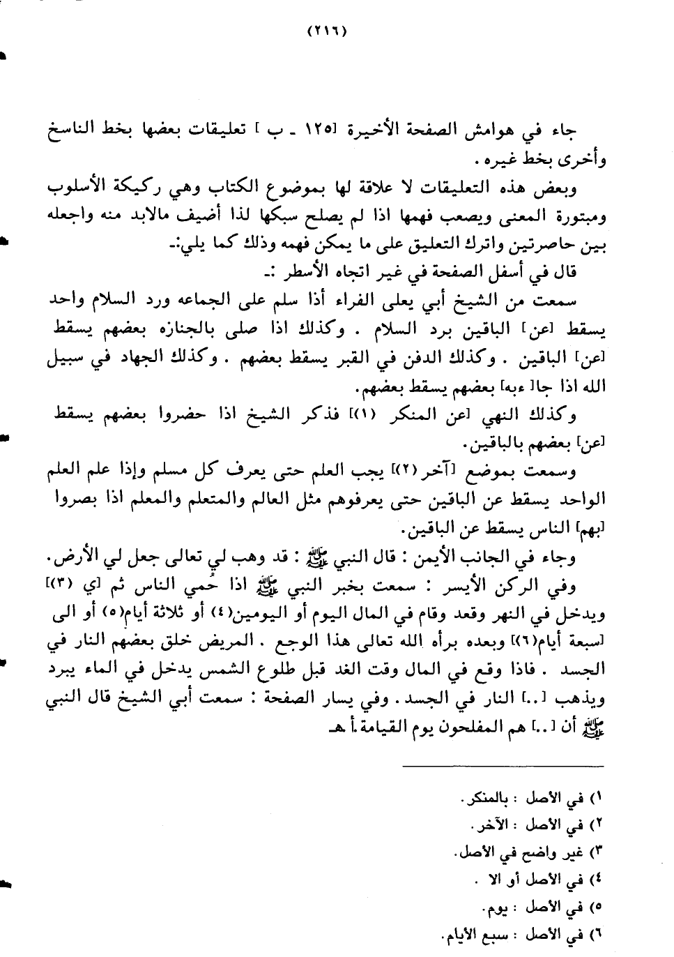 جاء في هوامش الصفحة الأخيرة تعليقات بعضها بخط الناسخ وأخرى بخط غيره.