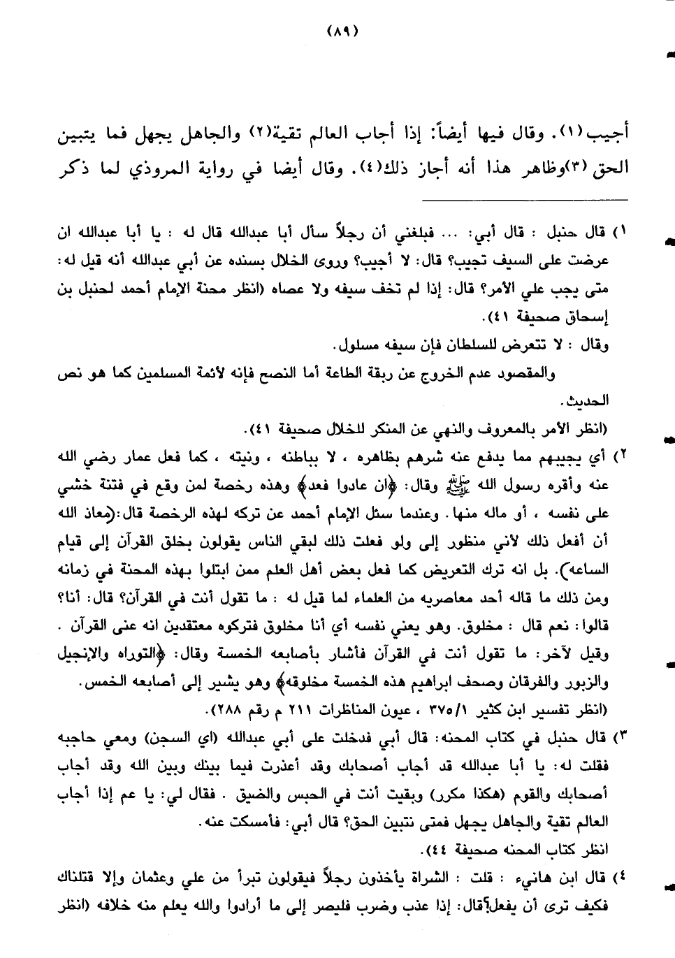 أجيب. وقال فيها أيضاً: إذا أجاب العالم تقية والجاهل يجهل فما يتبين الحق وظاهر هذا أنه أجاز ذلك. وقال أيضا في رواية المروذي لما ذكر