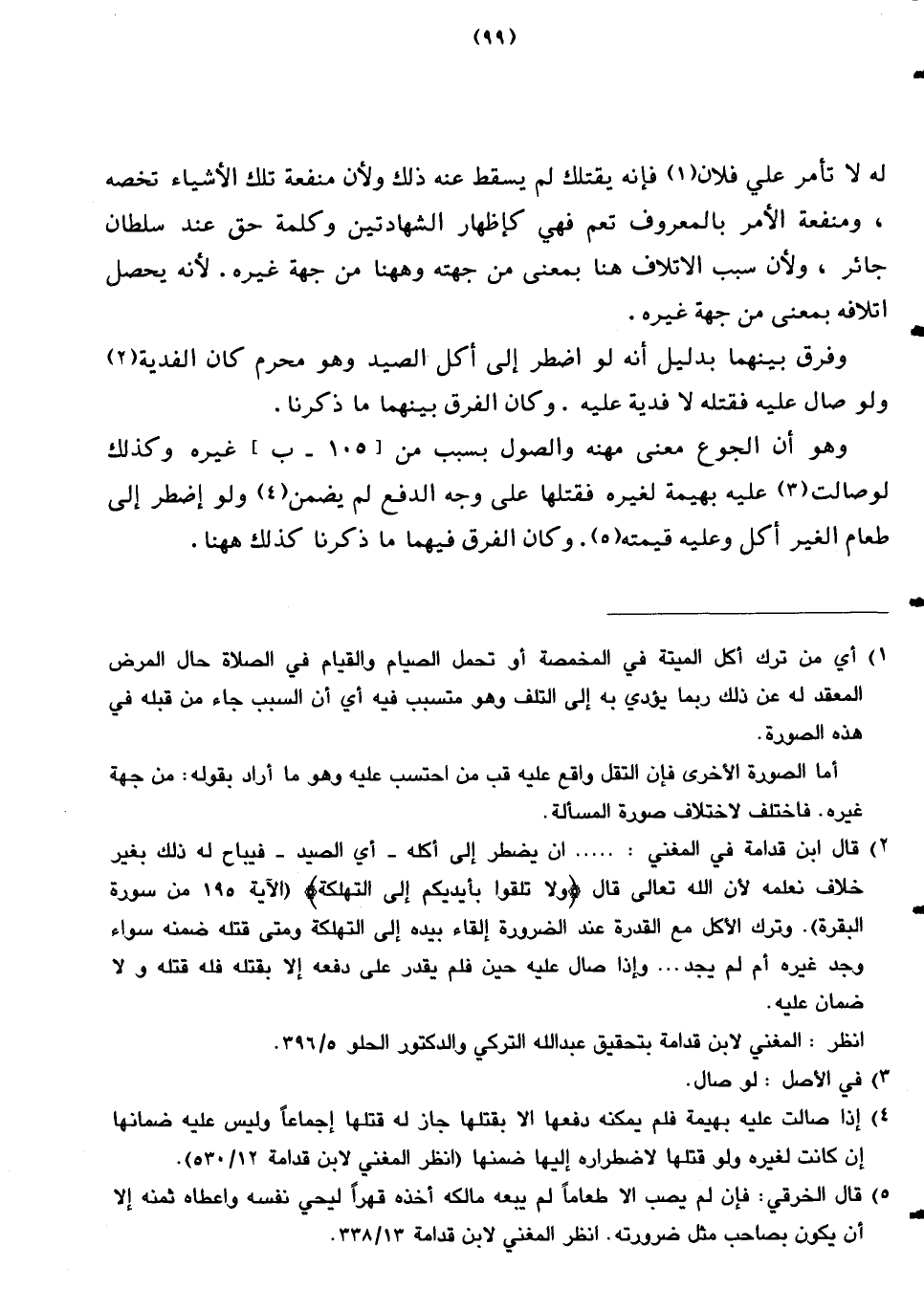 له لا تأمر على فلان فإنه يقتلك لم يسقط عنه ذلك ولأن منفعة تلك الأشياء تخصه، ومنفعة الأمر بالمعروف تعم فهي كإظهار الشهادتين وكلمة حق عند سلطان جائر، ولأن سبب الاتلاف هنا بمعنى من جهته وههنا من جهة غيره. لأنه يحصل اتلافه بمعنى من جهة غيره.