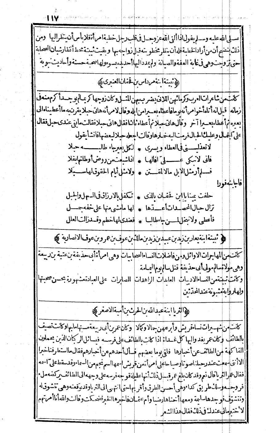 صلى الله عليه وسلم يقول: (إذا ألقى الله عز وجل في قلب رجل خطبة امرأة فلا بأس أن ينظر إليها) . ومن ذلك يتضح أن من أراد الخطبة فله أن ينظر مخطوبته قبل زواجه بها، وبقيت ثبيتة محط أنظار شبان الصحابة حتى تزوجت وهي في غاية العفة والصيانة ولم يمدد إليها أحد يده بسوء، ولها صحبة حسنة وأحاديث نبوية.