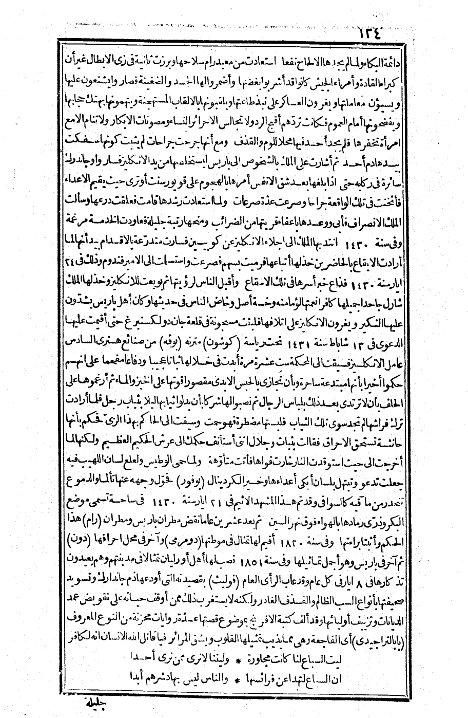 وفي سنة 1851م نصب لها أهل "أورليان" تمثالاً في مدينتهم وهم يعيدون تذكارها في 8 أيار في كل عام وقد عاب الرأي العام "فوليت" بقصيدته التي أودعها ذم "جان دارك" وتسويد صحيفتها بأنواع السب الظالم والقذف الغادر، ولكنه لا يستغرب ذلك ممن أوقف حياته على تقويض عمد الديانات، وتزييف أوليائها، وقد ألف كتبة الإفرنج بموضوع قصتها عدة روايات محزنة من النوع المعروف "بالتراجيدي" أي الفاجعة وهي مما يذيب تمثيلها القلوب ويشق المرائر فيا قاتل الله الإنسان إنه لكافر.