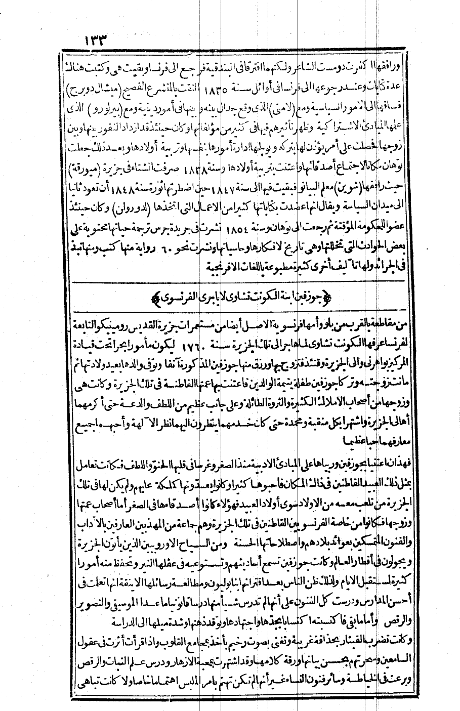 وسنة 1854م نشرت في جريدة "جرس" ترجمة حياتها محتوية على بعض الحوادث التي تخللتها وهي تاريخ لأفكارها وحاسياتها ونشرت نحو 60 رواية منها كتب ومنها نبذ في الجرائد ولها تآليف أخرى كثيرة مطبوعة باللغات الإفرنجية.