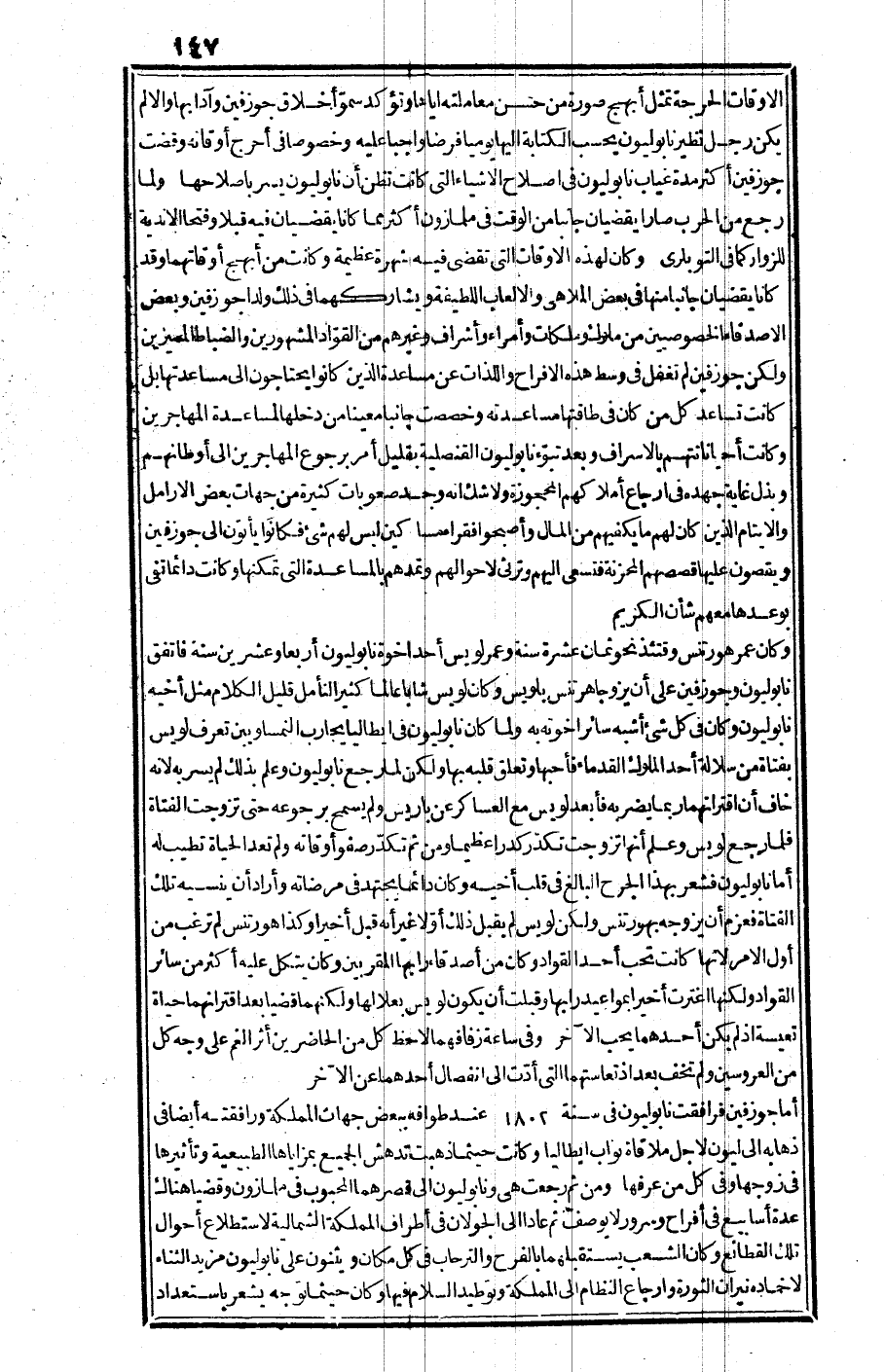 أما "جوزفين" فرافقت "نابوليون" في سنة 1802 م عند طوافه ببعض جهات المملكة ورافقته أيضا في ذهابه إلى "ليون" لأجل ملاقاة نواب إيطاليا, وكانت حيثما ذهبت تدهش الجميع أيضا في ذهابه إلى "ليون" لأجل ملاقاة نواب إيطاليا, وكانت حيثما ذهبت تدهش الجميع بمزاياها الطبيعية وتأثيرها في زوجها وفي كل من عرفها, ومن ثم رجعت هي و"نابوليون" على قصرهما المحبوب في "ملمازون" وقضيا هناك عدة أسابيع في أفراح وسور لا يوصف, ثم عاد إلى الجولان في أطراف المملكة الشمالية لاستطلاع أحوال تلك القطائع, وكان الشعب يستقبلهما بالفرح والترحاب في كل مكان, ويثنون على "نابوليون" مزيد الثناء لإخماد نيران الثورة, وإرجاع النظام إلى المملكة, وتوطيد السلام فيها. وكان حيثما توجه يشعر باستعداد