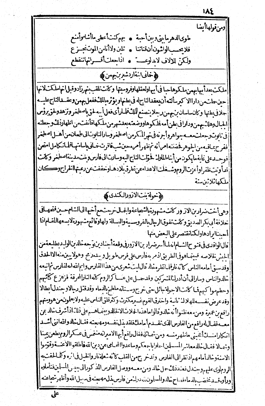 وهي أخت ضرار بن الأزور· كانت مشهورة بالشجاعة والجمال، خرجت مع أخيها إلى الشام حين فتحها في خلافة أبي بكر الصديق وكانت تفوق الرجال بالفروسية والبسالة، ولها وقائع مشهورة لا يسعها المقام إذا أحببنا إيرادها ولكنا نقتصر علي البعض منها· قال الواقدي في " فتوح الشام": إنه لما أسر ضرار بن الأزور في وقعة أجنادين توجه خالد بن الوليد بطليعة من الجيش لخلاصه فبينما هو في الطريق إذ مر به فارس على فرس طويل وبيده رمح، وهو لا يبين منه إلا الحدق وقد سيق أمامه الناس كأنه نار، فلما نظره خالد قال: ليت شعري من هذا الفارس، وأيم الله، إنه لفارس ثم اتبعه خالد والناس وسار إلى أن أدرك المشركين وقد حمل على عساكر الروم كأنه النار المحرقة، فزعزع كتائبهم، وحطم مواكبهم، فما كانت إلا جولة جائل حتى خرج وسنانه ملطخ بالدماء، وقد قتل رجالا وجندل أبطالا وقد عرض نفسه للهلاك ثانية، واخترق القوم غير مكترث وكثر قلق الناس عليه ولا يعلمون من هو منهم رافع بن عميرة ومن معه ظنوا أنه خالد وقالوا: ما هذه الحملات إلا لخالد، وبينما هم ومنهم رافع بن عميرة ومن معه ظنوا أنه خالد وقالوا: ما هذه الحملات إلا لخالد، وبينما هم على ذلك إذ أشرف خالد بمن معه فقال له رافع: من الفارس الذي تقدم أمامك فلقد بذل نفسه ومهجته؟ فقال خالد: والله إنني أشد إنكارا منك أعجبني ما ظهر منه ومن شمائله·