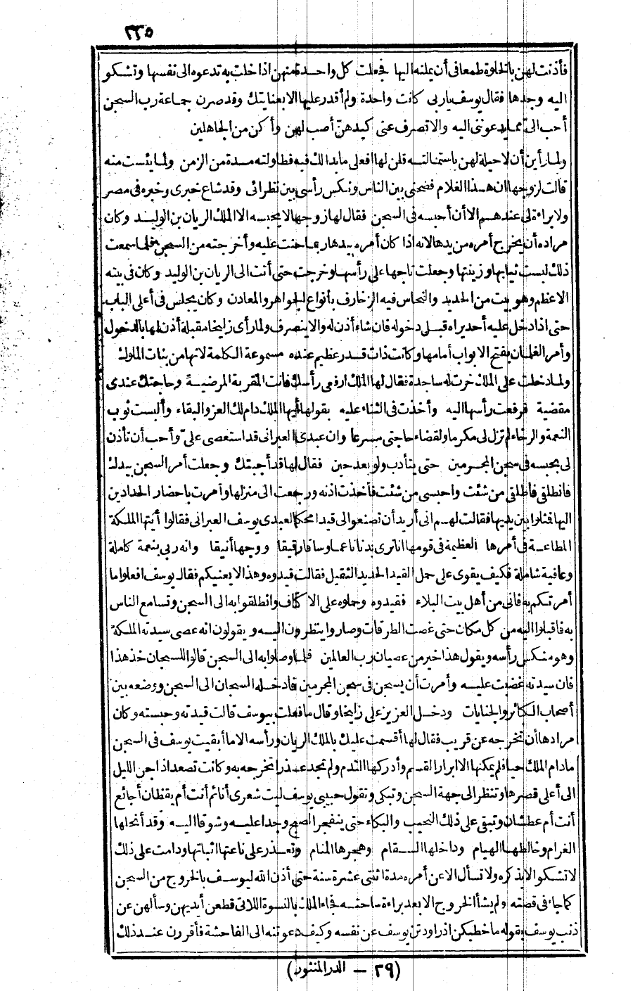 ولما رأين أن لا حيلة لهن باستمالته قلن لها افعلي ما بدا لك فيه، فطاولته مدة من الزمن ولما يئست منه قالت لزوجها: إن هذا الغلام فضحني بين الناس ونكس رأسي بين نظرائي وقد شاع خبري وخبره في مصر ولا براءة لي عندهم إلا أن أحبسه في السجن· فقال لها زوجها: لا يحبسه إلا الملك الريان بن الوليد، وكان مراده أن يخرج أمره من يدها لأنه إذا كان مره بيدها ربما حنت عليه وأخرجته من السجن فلما سمعت ذلك لبست ثيابها وزينتها وجعلت تاجها على رأسها وخرجت حتى أتت إلى الريان بن الوليد وكان في بيته الأعظم وهو بيت من الحديد والنحاس فيه الزخارف بأنواع الجواهر والمعادن وكان يجلس في أعلى الباب حتى إذا دخل عليه أحد يراه قبل دخوله، فإن شاء أذن له وإلا ينصرف·