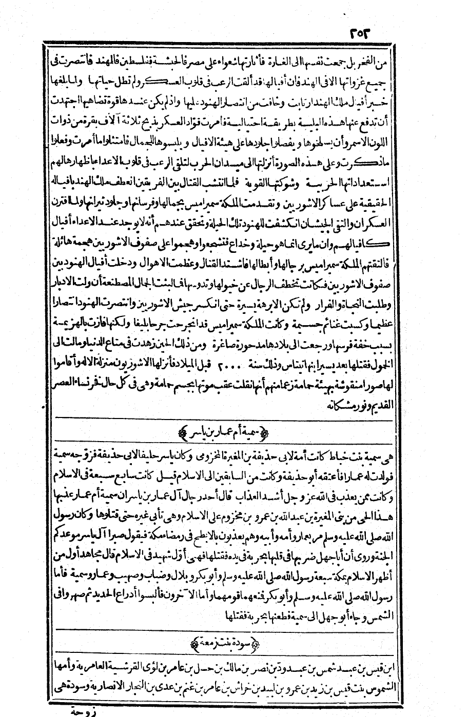 من الفخر، بل جمحت نفسها إلى الغارة فأثارتها شعواء على مصر، فالحبشة، ففلسطين، فالهند، فانتصرت في جميع غزواتها إلا الهند فإن أفيالها قد ألقت الرعب في قلوب العسكر ولم تطل حياتها.