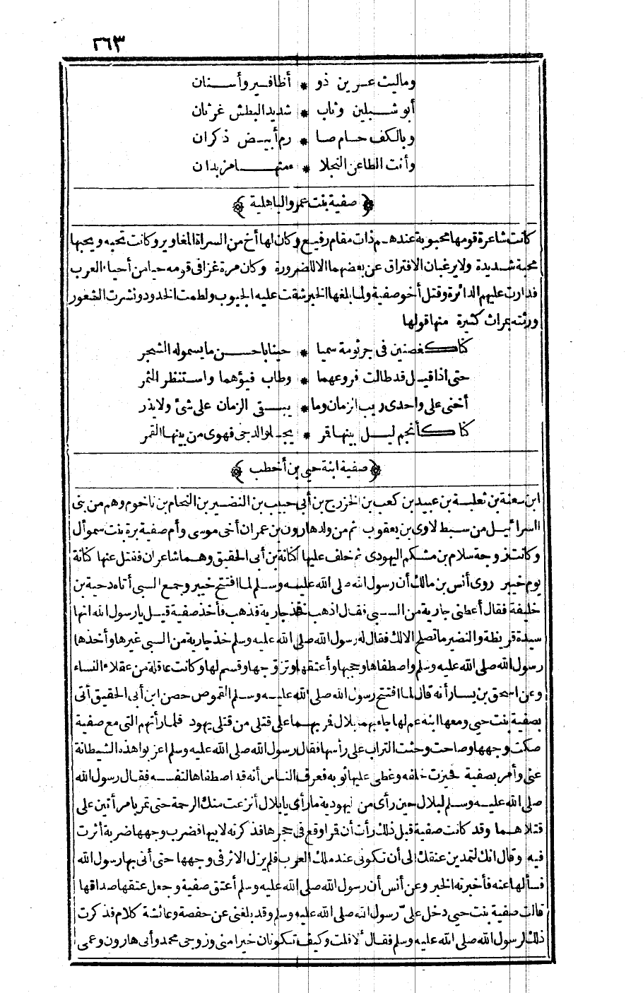 روى أنس بن مالك أن رسول الله صلى الله عليه وسلم لما افتتح خبير وجمع السبي أتاه دحية بن خليفة فقال: أعطني جارية من السبي فقال: (اذهب فخذ جارية) . فذهب فأخذ صفية، قيل: يا رسول الله، إنها سيدة قريظة والنضير ما تصلح إلا لك! فقال له رسول الله صلى الله عليه وسلم: (خذ جارية من السبي غيرها) . وأخذها رسول الله صلى الله عليه وسلم واصطفاها وحجبها، وأعتقها وتزوجها، وقسم لها وكانت عاقلة من عقلاء النساء.