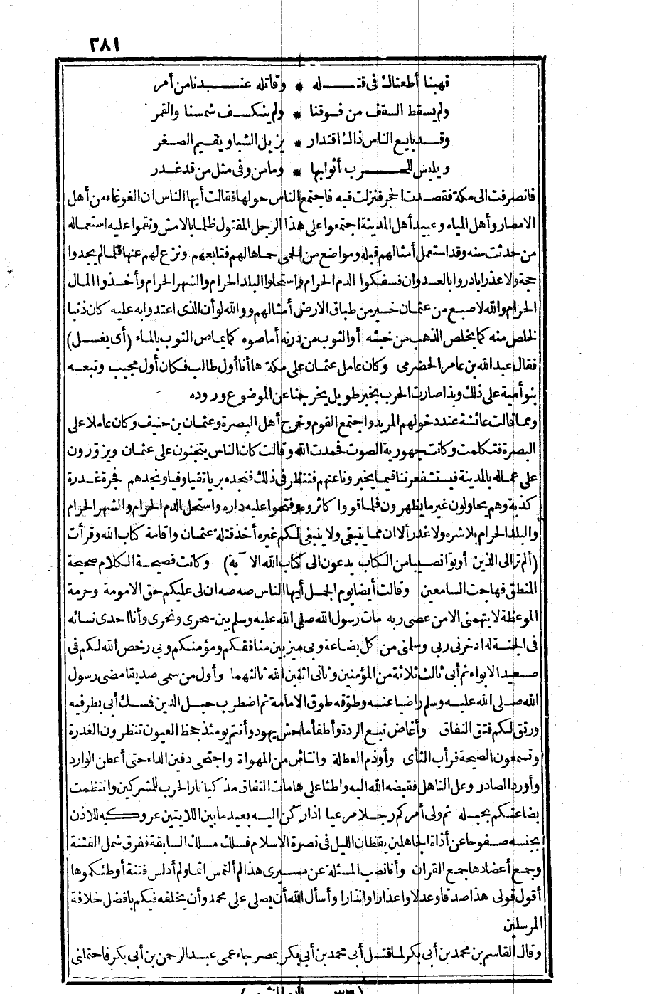 فانصرفت إلى مكة فقصدت الحجر فنزلت فيه فاجتمع الناس حولها فقالت: أيها الناس، إن الغوغاء من أهل الأمصار وأهل المياه وعبيد أهل المدينة اجتمعوا على هذا الرجل المقتول ظلما بالأمس ونقموا عليه استعماله من حدثت سنه، وقد استعمل أمثالهم قبله مواضع من الحمى حماها لهم، فتابعهم ونزع لهم عنها، فلما لم يجدوا حجة ولا عذرا بادروا بالعدوان، فسفكوا الدم الحرام، واستحلوا البلد الحرام والشهر الحرام، وأخذوا المال الحرام، والله لأصبع من عثمان خير من طباق الأرض أمثالهم، ووالله لو أن الذي اعتدوا به عليه كان ذنبا لخلص منه كما يخلص الذهب من خبثه، أو الثوب من درنه أماصوه كما يماص الثوب بالماء (أي يغسل) . فقال عبد الله بن عامر الحضرمي: وكان عامل عثمان على مكة ها أنا أول طالب فكان أول مجيب وتبعه بنو أمية على ذلك وبذا صارت الحرب بخبر طويل يخرجنا عن الموضوع وروده.