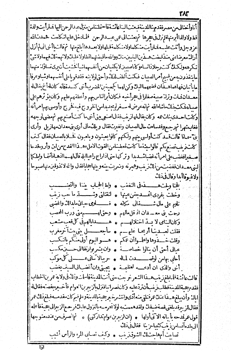 قالت عائشة: فلما بلغ زينب هذا الشعر خرجت حتى أتت المدينة فأسلمت، وذلك في ولاية عمر بن الخطاب، فقدم حجية المدينة، فطلب زينب أن ترد عليه وكان نصرانيا فنزل بالزبير بن العوام فأخبره بقصته فقال له: إياك وأن يبلغ هذا عنك عمر فتلقي منه أذى وانتشر خبر حجية بالمدينة وعلم فيم كان مقدمه فبلغ ذلك عمر فقال للزبير: قد بلغني قصة ضيفك ولقد هممت به لولا تحرمه بالنزول عليك فرجع الزبير إلى حجية فأعلمه قول عمر فمدحه بأبياته الآتي أولها: (إن الزبير بن عوام تداركني) ثم انصرف من عنده متوجها إلى بلده آيسا من زينب كئيبا حزينا، فقال في ذلك: