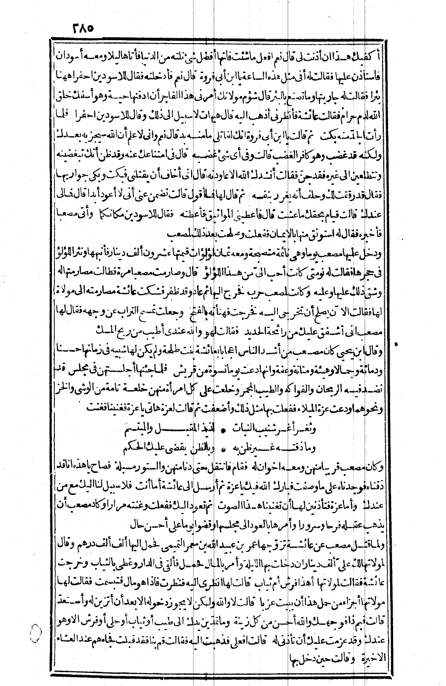 أكفيك هذا إن أذنت لي. قال: نعم. افعل ما شئت فإنها أفضل شيء نلته من الدنيا فأتاها ليلا ومعه أسودان فاستأذن عليها فقالت له: أفي مثل هذه الساعة يا ابن أبي فروة قال: نعم. فأدخلته. فقال للأسودين: احفر ههنا بئرا. فقالت له جاريتها: وما تصنع بالبئر؟ قال: شؤم مولاتك، أمرني هذا الفاجر أن أدفنها حية وهو أسفك خلق الله لدم حرام. فقالت عائشة: فأنظرني أذهب إليه. قال: هيهات، لا سبيل إلى ذلك. وقال للأسودين: احفر ههنا بئرا. فقالت له جاريتها: وما تصنع بالبئر؟ قال: شؤم مولاتك، أمرني هذا الفاجر أن أدفنها حية وهو أسفك خلق الله لدم حرام. فقالت عائشة: فأنظرني أذهب إليه. قال: هيهات، لا سبيل إلى ذلك. وقال للأسودين: احفرا.
