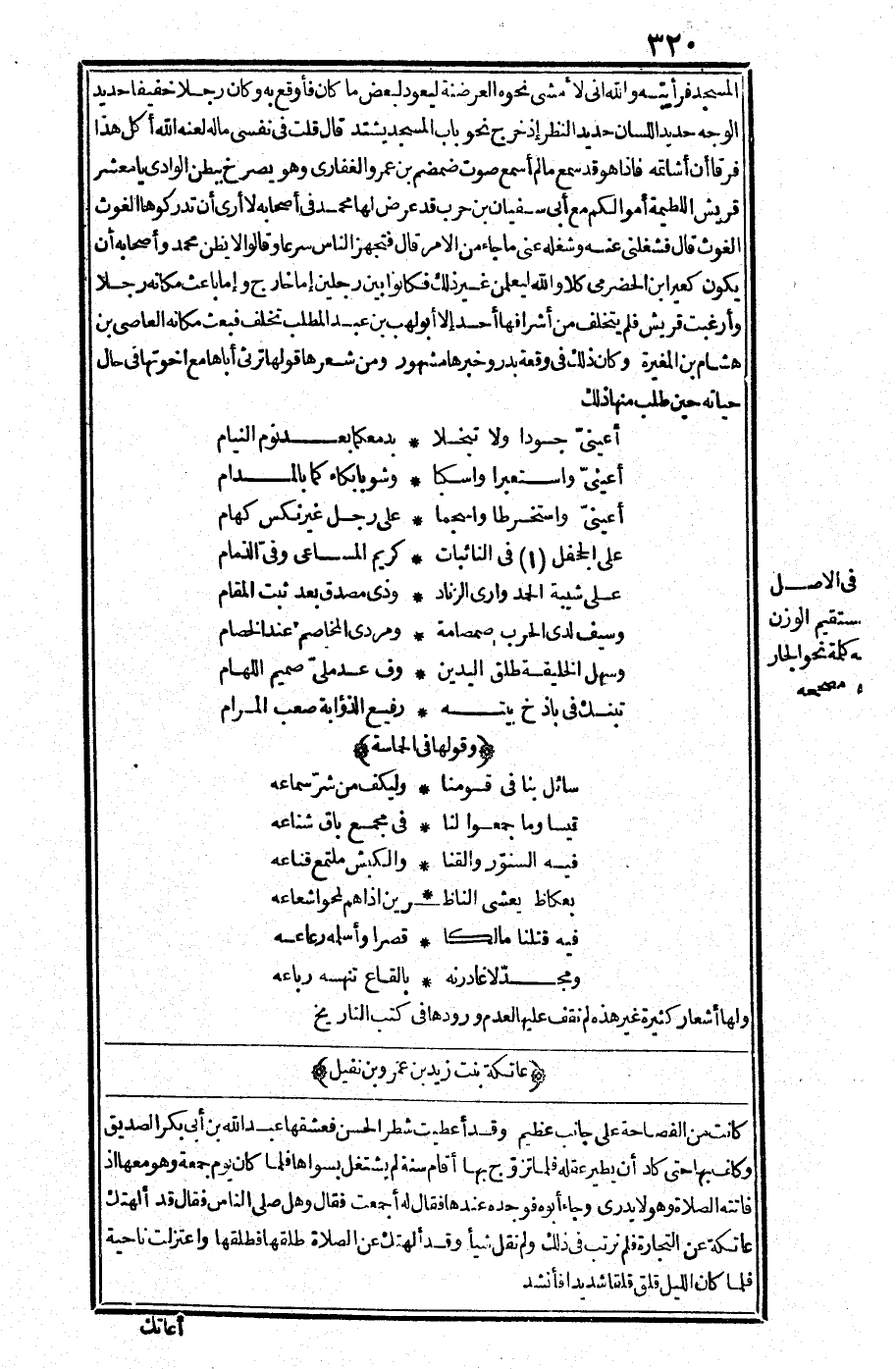 قال: فتجهز الناس سرعا وقالوا: لا يظن محمد وأصحابه أن يكون كعير ابن الحضرمي كلا والله ليعلمن غير ذلك فكانوا بين رجلين إما خارج وإما باعث مكانه رجلا وأرغب قريش فلم يتخلف من أشرافها أحد إلا أبو لهب بن عبد المطلب تخلف فبعث مكانه العاصي بن هشام بن المغيرة، وكان ذلك في وقعة بدر وخبرها مشهور ومن شعرها قولها ترثي أباها مع إخوتها في حال حياته حين طلب منها ذلك.