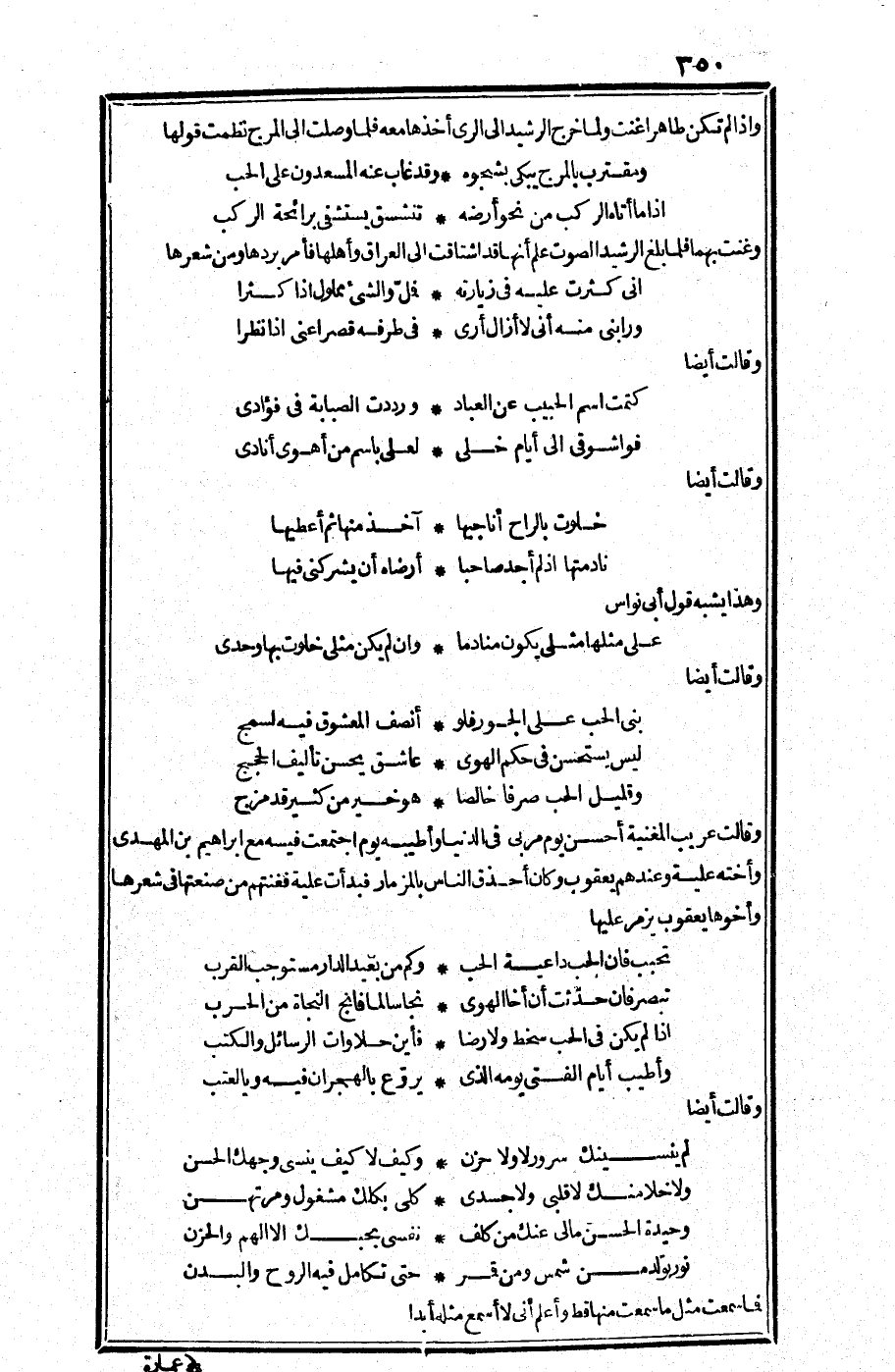 وغنت بهما، فلما بلغ الرشيد الصوت علم أنها قد اشتاقت إلى العراق وأهلها فأمر بردا. ومن شعرها: