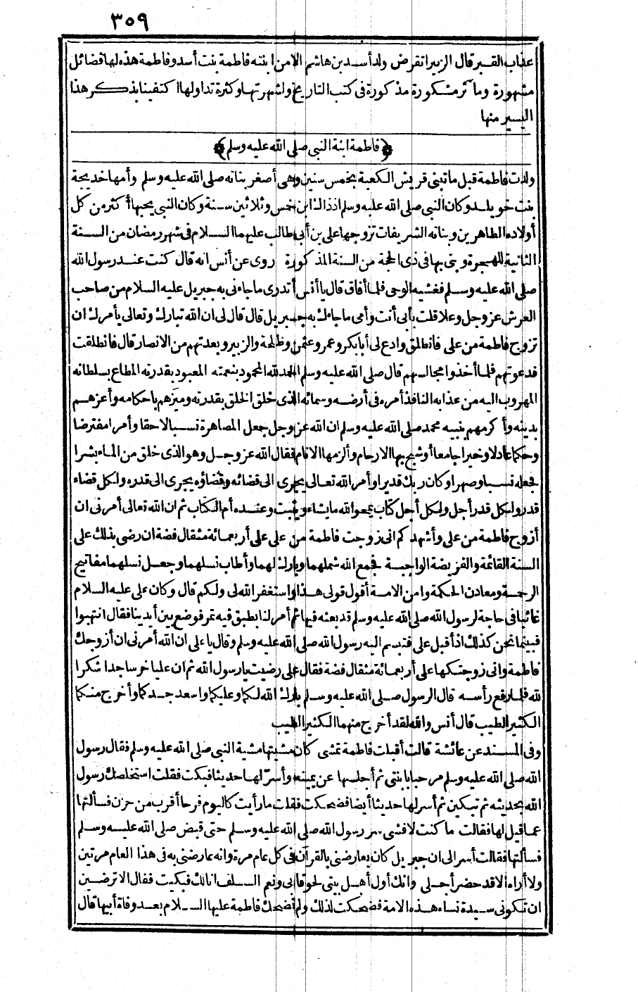 وكان يحبها أكثر من كل أولاده الطاهرين وبناته الشريفات تزوجها علي بن أبي طالب عليهما السلام في شهر رمضان من السنة الثانية للهجر وبنى بها في ذي الحجة من السنة - المكورة-.