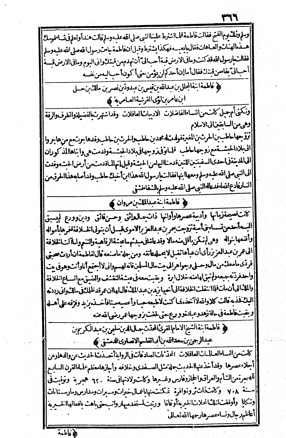 فاطمة ابنة الشيخ الإمام المقرئ المحدث جمالا لدين سليمان بن عبد الكريم بن عبد الرحمن بن سعد الله بن أبي القاسم الأنصاري الدمشقي.