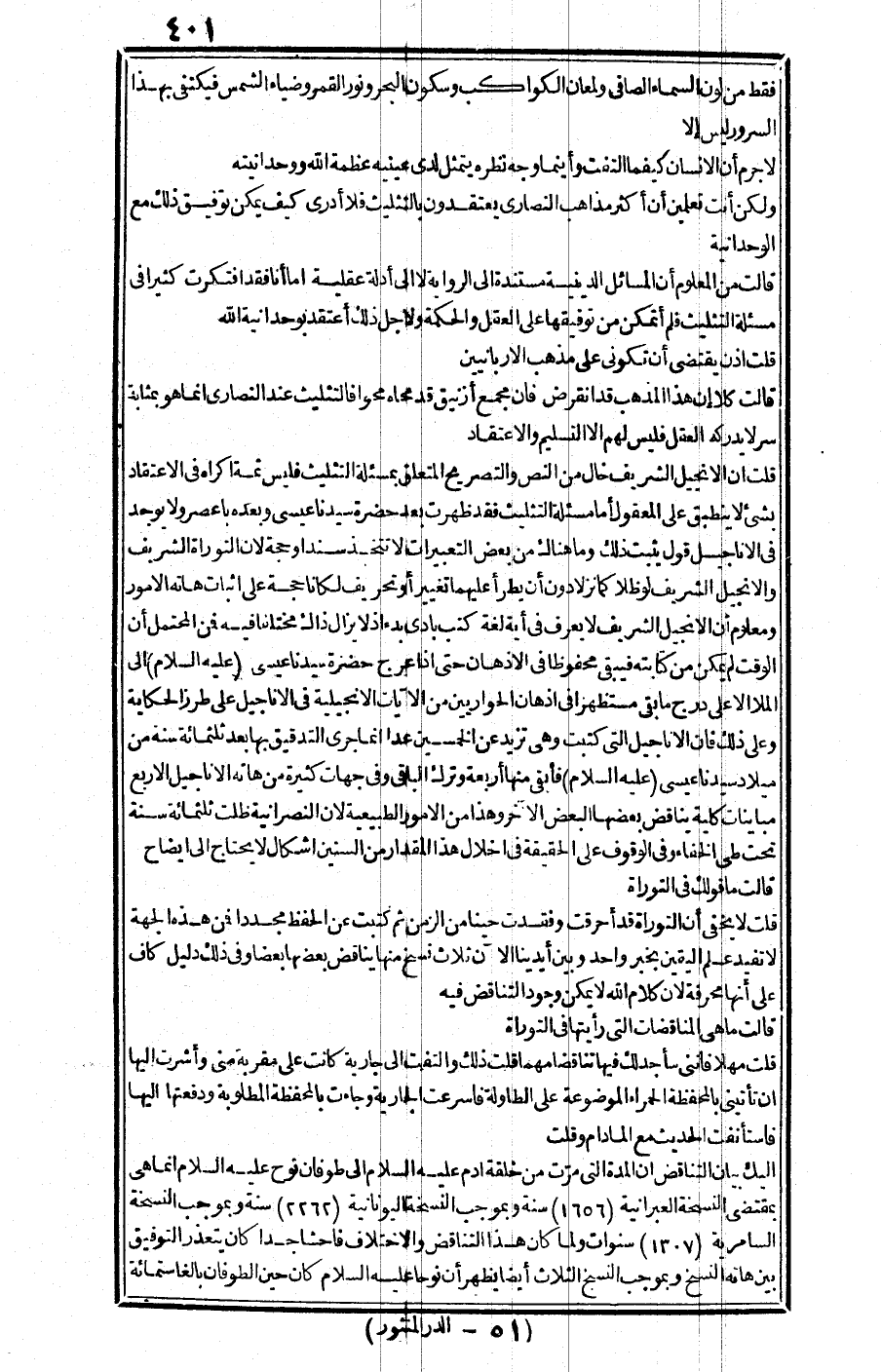 قلت: إن الإنجيل الشريف خال من النص والتصريح المتعلق بمسألة التثليث فليس ثمة إكراه في الاعتقاد بشيء لا ينطبق على المعقول.