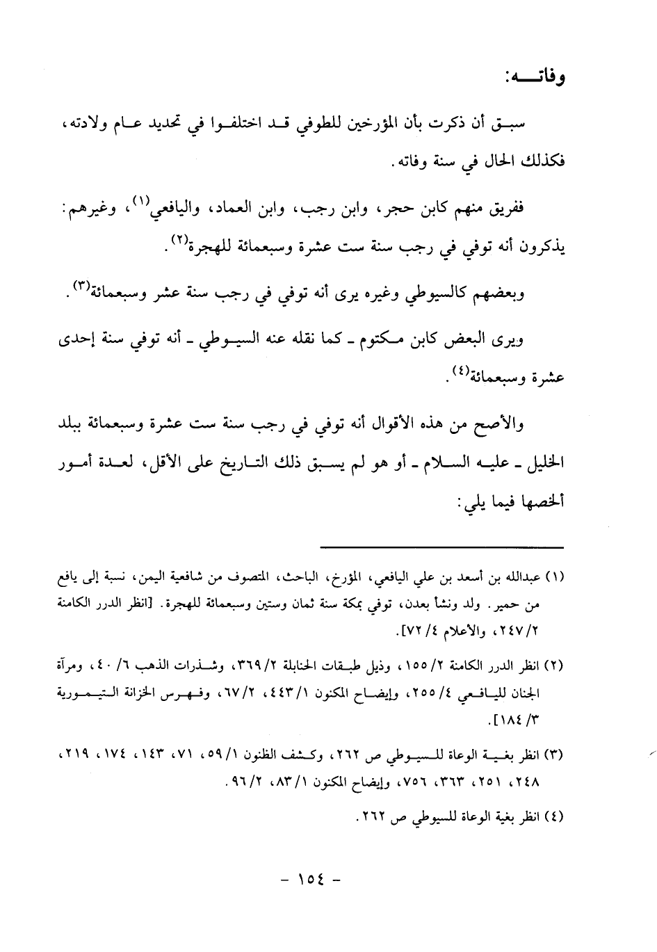 وبعضهم كالسيوطي وغيره يرى أنه توفي في رجب سنة عشر وسبعمائة «3».