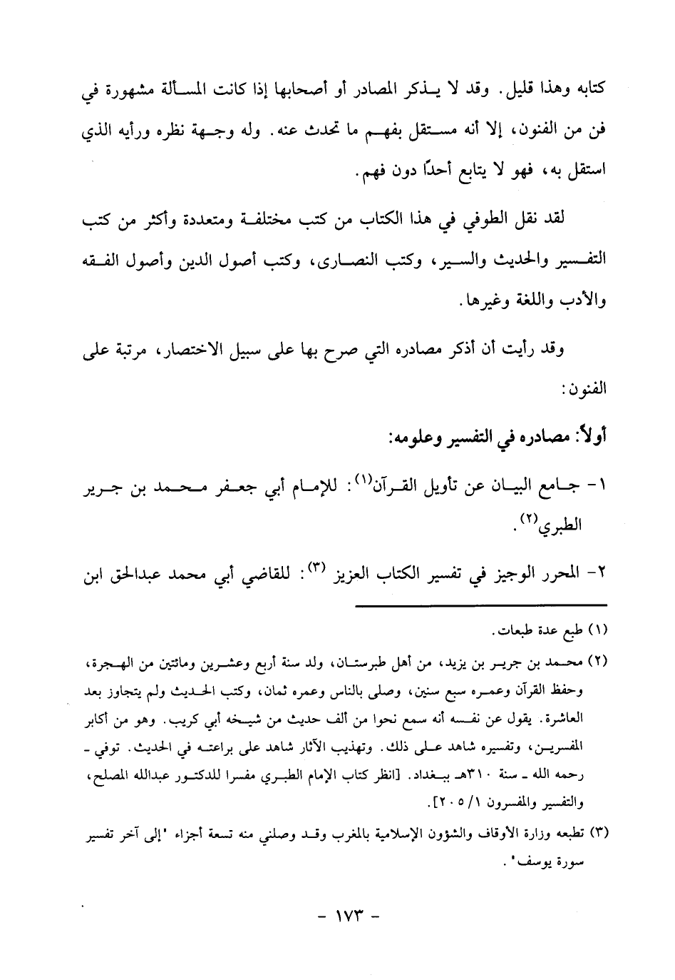 (3) تطبعه وزارة الأوقاف والشئون الإسلامية بالمغرب وقد وصلني منه تسعة أجزاء" إلى آخر تفسير سورة يوسف".