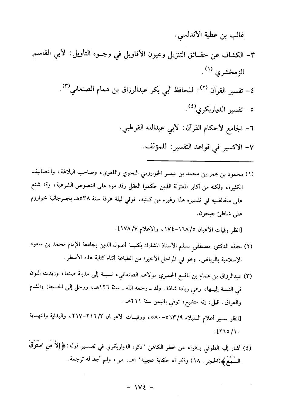 (2) حققه الدكتور مصطفى مسلم الأستاذ المشارك بكلية أصول الدين بجامعة الإمام محمد بن سعود الإسلامية بالرياض. وهو في المراحل الأخيرة من الطباعة أثناء كتابة هذه الأسطر.