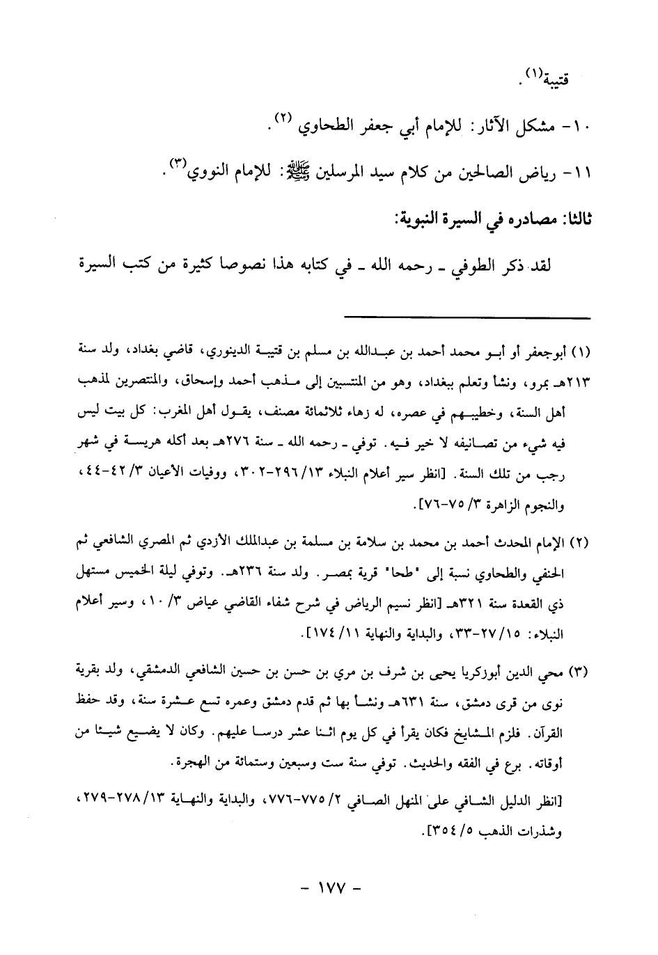 لقد ذكر الطوفي- رحمه الله- في كتابه هذا نصوصا كثيرة من كتب السيرة