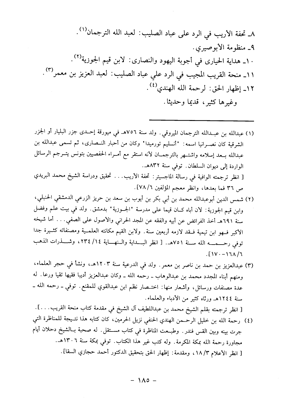 8 - تحفة الأريب في الرد على عباد الصليب: لعبد الله الترجمان «1».