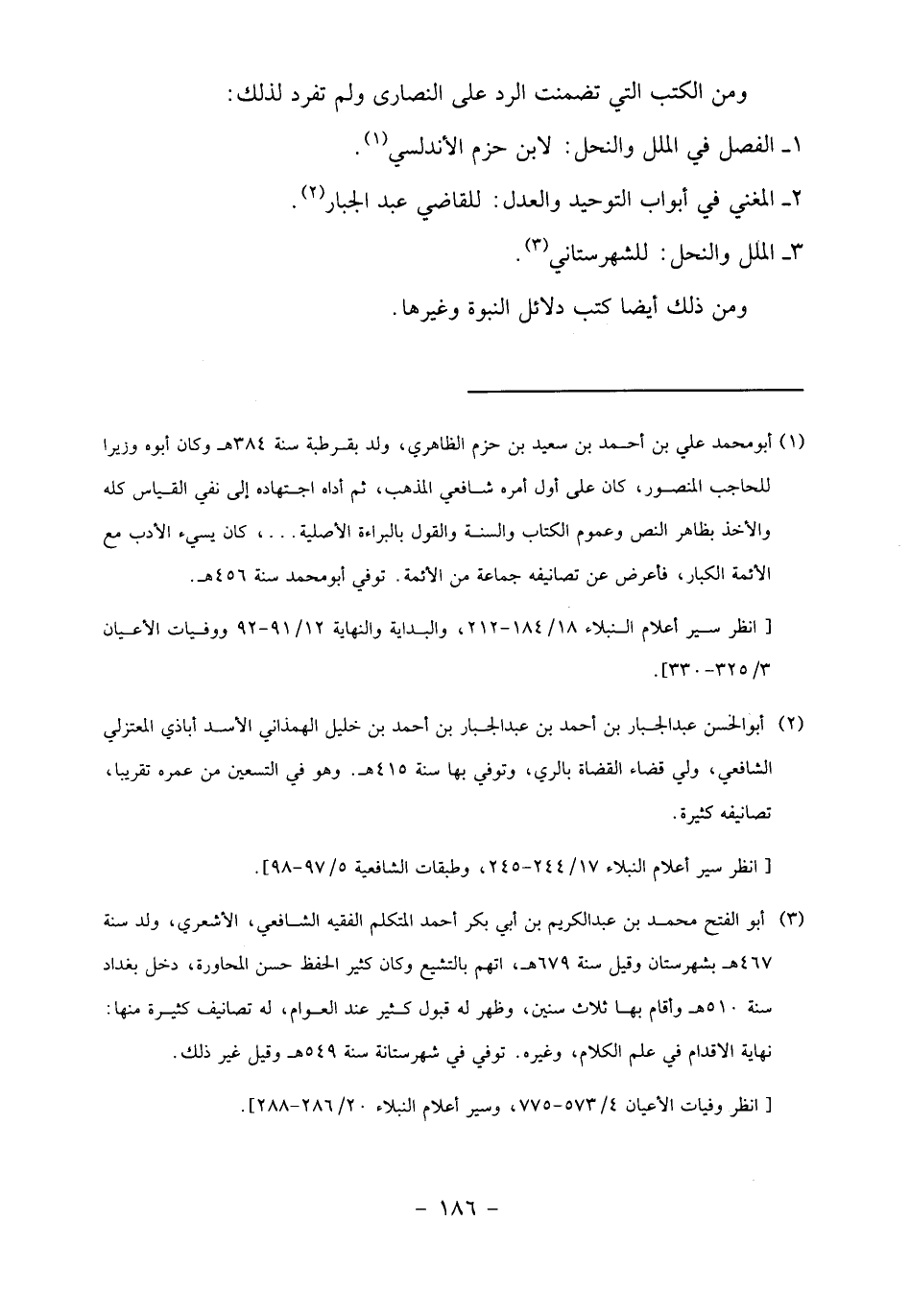 1 - الفصل في الملل والنحل: لابن حزم الأندلسي «1».